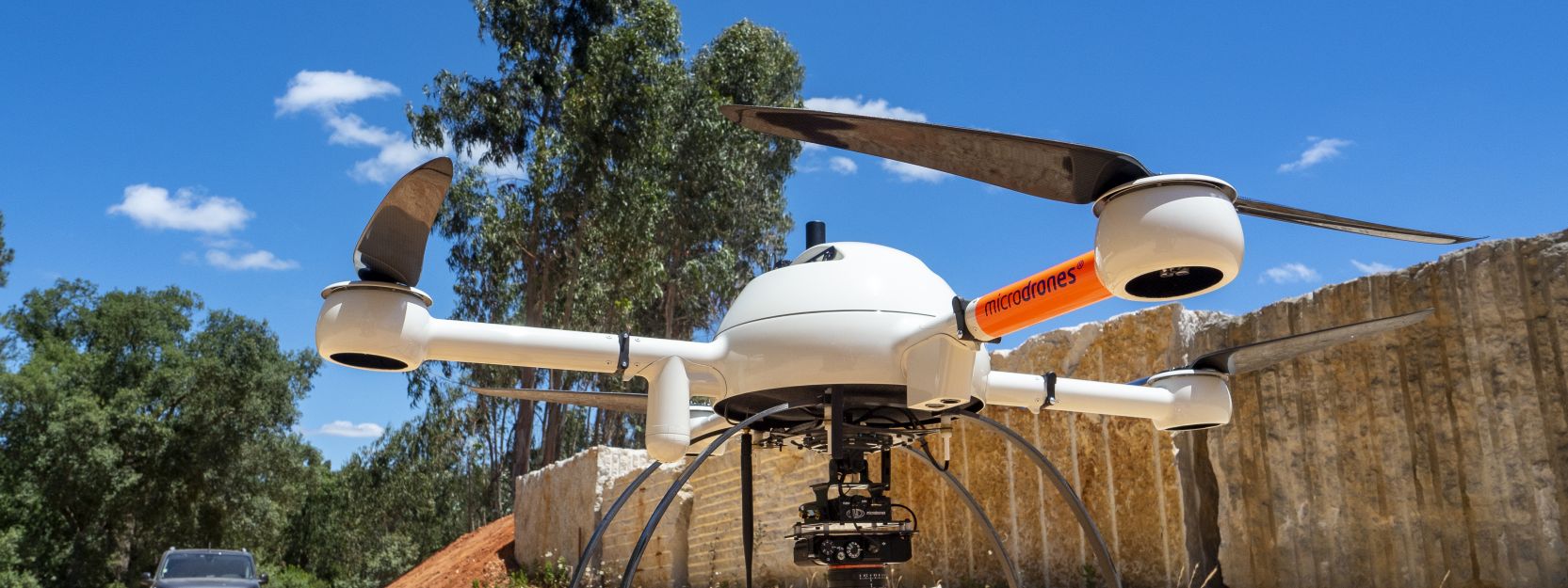 为了完成这项工作,aerissurvey使用了mdMapper1000DG,这是一架由microdrone生产的四轴飞行器(也就是说它依靠四个螺旋桨运行)。这家总部位于德国的公司是第一个商业发布的四轴飞行器可靠和坚固足以专业应用。无人机的飞行时间可达45分钟,电池充电一次可覆盖80公顷土地。对于有效载荷,它携带一个索尼RX1R II 4240万像素相机作为传感器和一个Applanix APX-15-L无人机惯性测量单元(IMU)用于地理参考。